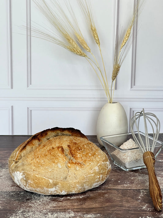 Nuestras hogazas de masa madre son el resultado de una meticulosa combinación de ingredientes naturales y un proceso de fermentación prolongado que les confiere un sabor y una textura inigualables. Cada hogaza es artesanalmente elaborada con harina de la más alta calidad, agua pura, sal marina y nuestra exclusiva masa madre.